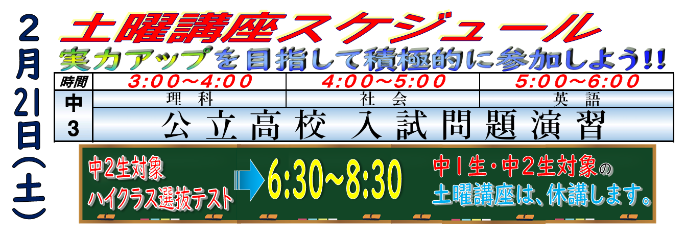 • 2月21日(土)のスケジュール 2026年2月18日